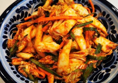 Mein Name ist Minok Nam. Ich komme aus Busan, Südkorea und lebe seit 2003 in Ulm. Ich freue mich, koreanisches Essen durch „Yan’s Kitchen“ vorstellen zu können. Koreanisches Essen beginnt mit der Sojasaucen- und Sojapastenkultur, einer einzigartigen Form des Essens namens „Slow Food“. Basis-Sojasaucen, Sojapasten und Kimchi sind in Korea fermentierte Lebensmittel, die mehrere Jahre gelagert und verzehrt werden können. Ich möchte Ihnen auch in meinem Kochkurs etwas über die koreanische Esskultur vermitteln. Im Kochkurs werden wir u.a. Bibimbap zubereiten – ein repräsentatives koreanisches Essen, das alle besonders lieben. Bibimbap ist ein buntes Essen, das auf der Harmonie von Yin und Yang basiert. Außerdem lernen Sie Kimchi kennen, ein traditionelles koreanisches Food, das es in vielen Varianten gibt und weltweit als gesunde Reformkost geschätzt wird. Es enthält viele Lactobakterien und wird in einer Vielzahl von Lebensmitteln verwendet. Wir werden es im Kochkurs als leckere Kimchi-Pancakes genießen.